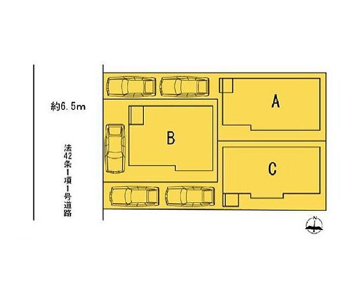 | 駐車場 | 2台 | 道路の幅員 | B号棟:西6.5m /C号棟:西6.5m /A号棟:西6.5m |