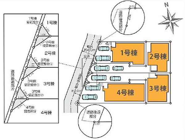 | 駐車場 | 2台 | 道路の幅員 | 3号棟:西4m /2号棟:西4m |