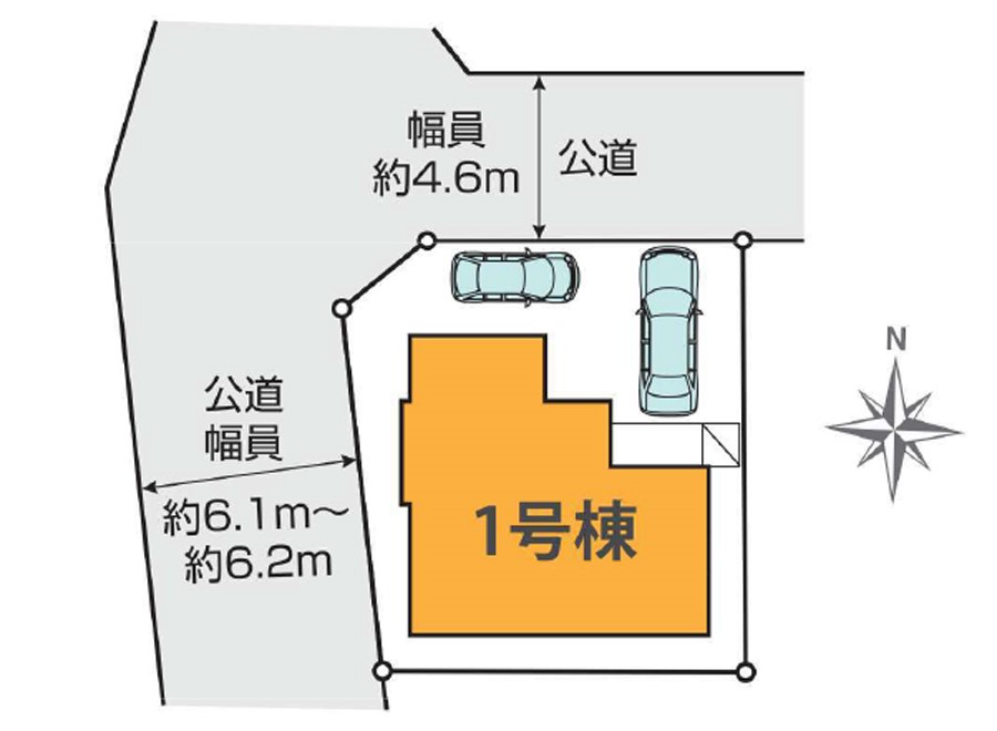 | 駐車場 | 2台 | 道路の幅員 | :北4.6m 西6.1m |