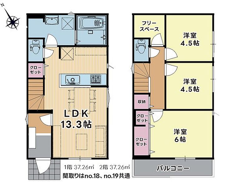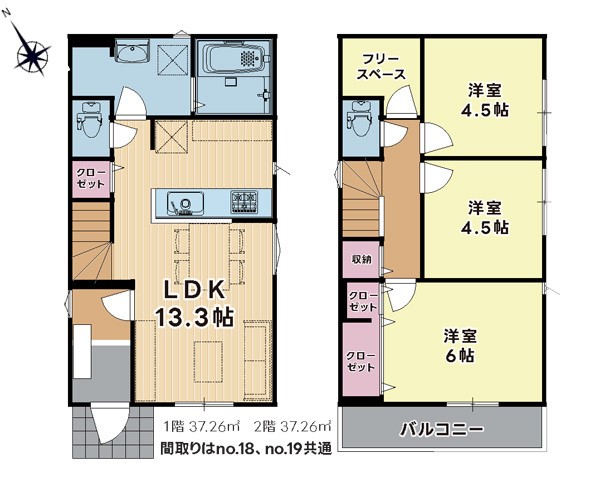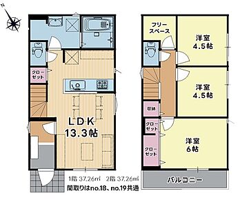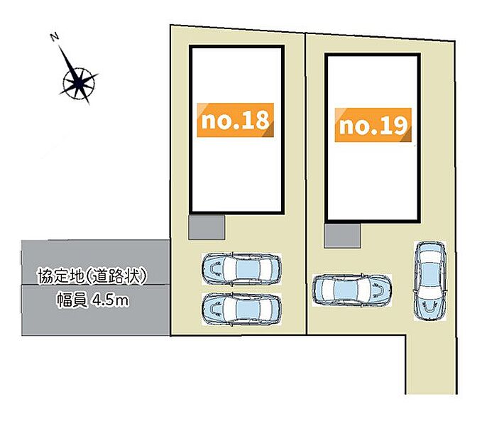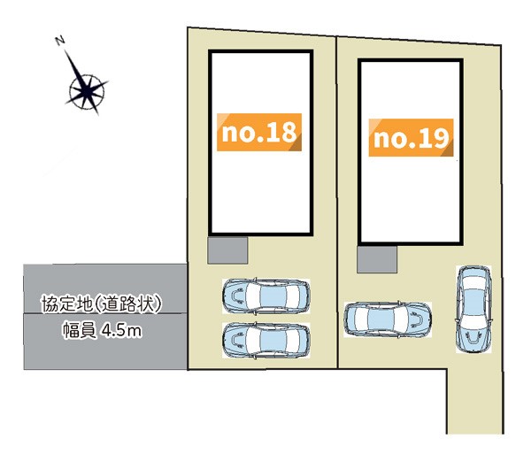 | 駐車場 | 2台 | 道路の幅員 | 19号棟:南4.5m /18号棟:南西4.5m |