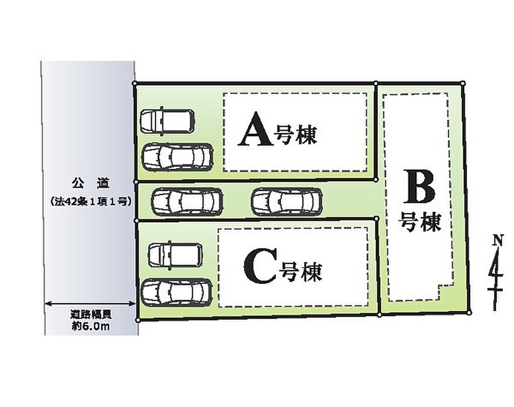 駐車場 2台 道路の幅員 B号棟:西6m