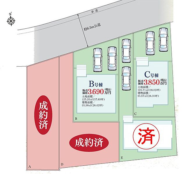 | 駐車場 | 2台 | 道路の幅員 | B号棟:北6.5m /C号棟:北6.5m |