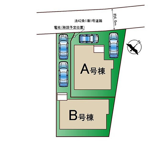 | 駐車場 | 2台 | 道路の幅員 | B号棟:北西4m /A号棟:北西4m |