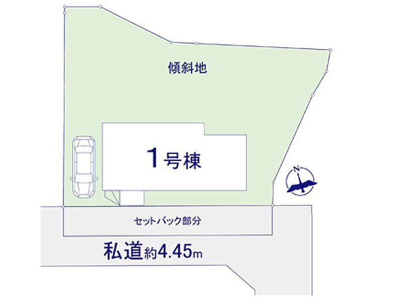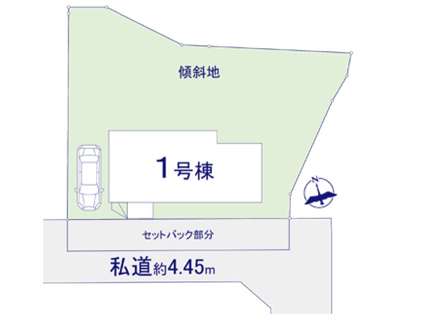 | 駐車場 | 1台 | 道路の幅員 | 1号棟:南4.4m |