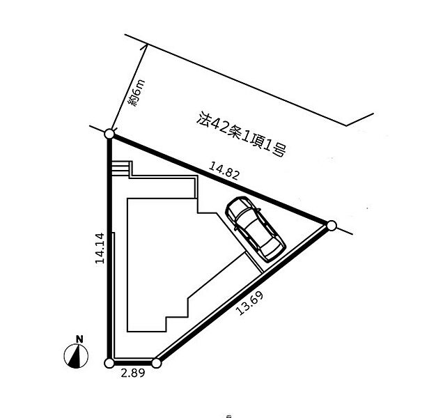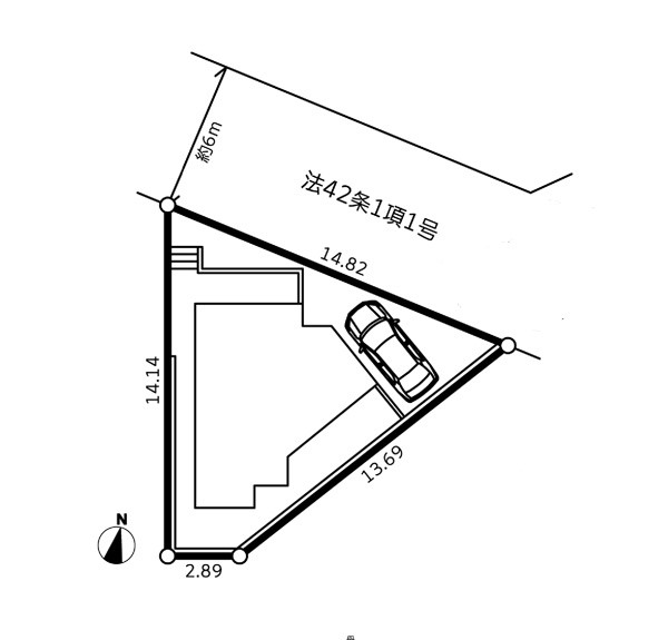 | 駐車場 | 1台 | 道路の幅員 | :北6m |