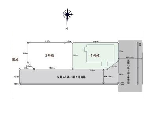 | 駐車場 | 1台 | 道路の幅員 | 1号棟:東4.5m 北6.3m |