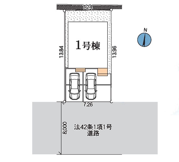 | 駐車場 | 2台 | 道路の幅員 | 1号棟:南8m |