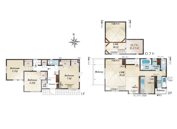 - ※完成予想図やCG合成画像は、門塀・植栽・庭・外観等、実際とは多少異なる場合があります。