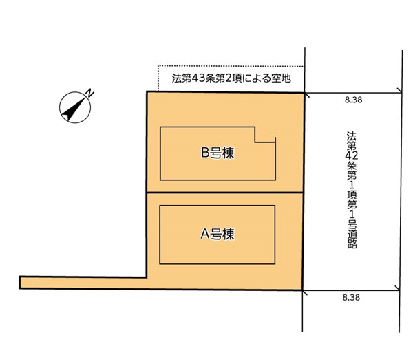 | 駐車場 | 1台 | 道路の幅員 | B号棟:北東8.3m 北西4.5m |