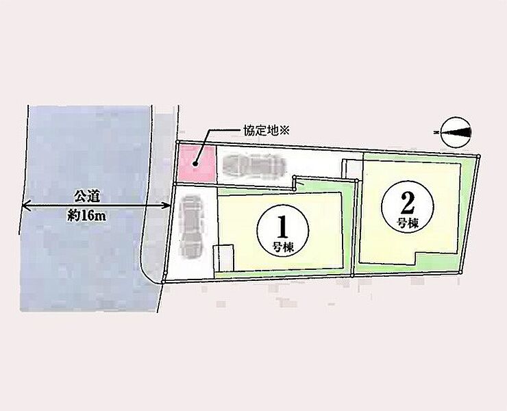 | 駐車場 | 1台 | 道路の幅員 | 1号棟:北16m /2号棟:北16m |