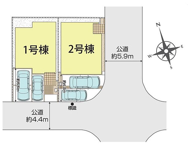 | 駐車場 | 2台 | 道路の幅員 | 2号棟:南4.4m 東5.9m |