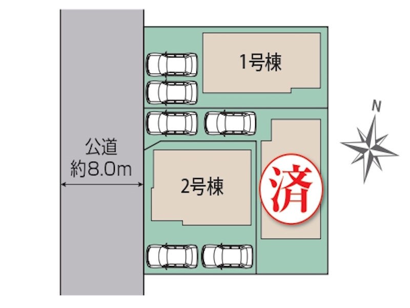 | 駐車場 | 2台 | 道路の幅員 | 2号棟:西8m |