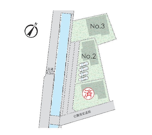 | 駐車場 | 3台 | 道路の幅員 | 2号棟:南東4m |