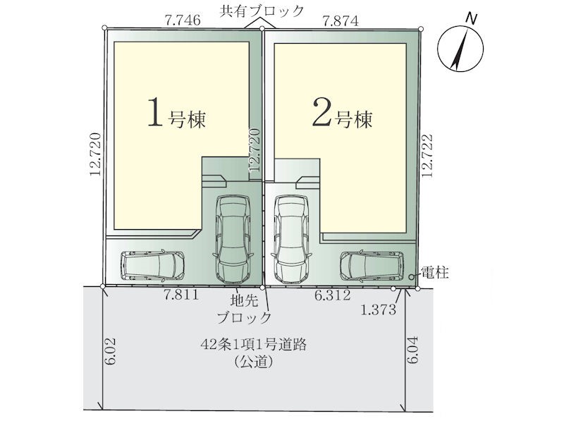 | 駐車場 | 2台 | 道路の幅員 | 2号棟:南6m |