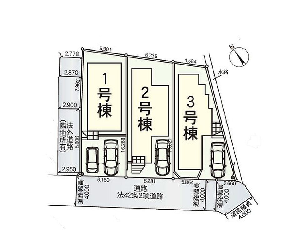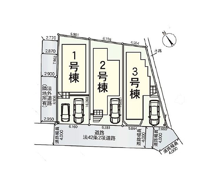 | 駐車場 | 1台 | 道路の幅員 | 2号棟:南西4m |