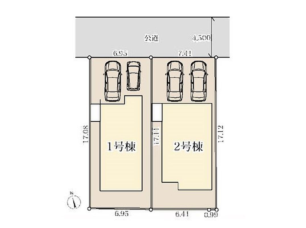 | 駐車場 | 2台 | 道路の幅員 | 2号棟:北東4.5m |