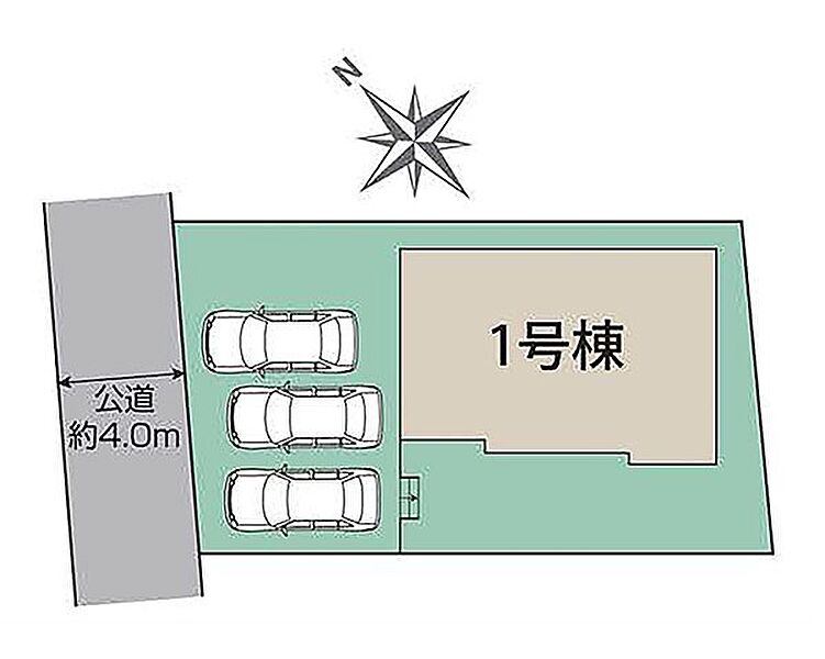 | 駐車場 | 3台 | 道路の幅員 | 1号棟:北西4m |