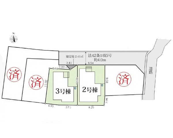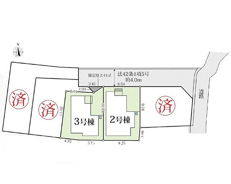 | 駐車場 | 1台 | 道路の幅員 | 2号棟:北4m /3号棟:北4m |