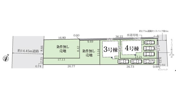 | 駐車場 | 3台 | 道路の幅員 | 3号棟:北東3.3m |