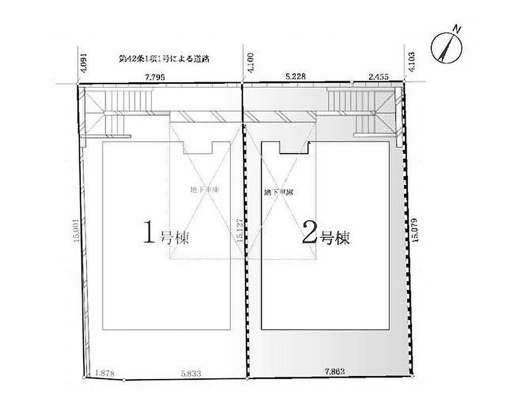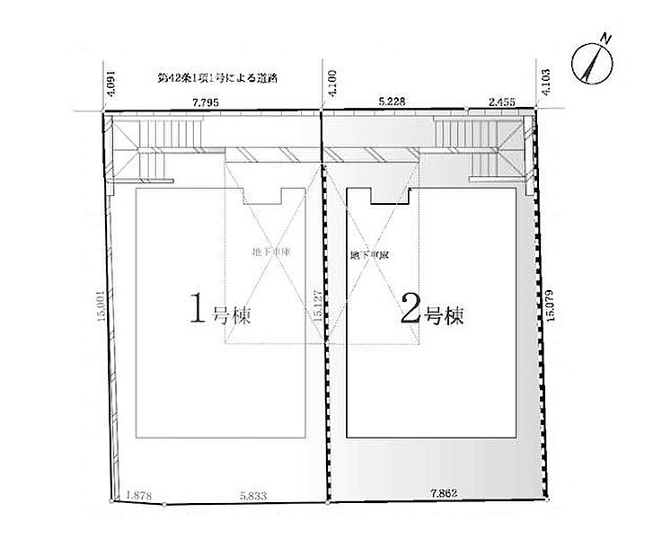 | 駐車場 | 1台 | 道路の幅員 | 2号棟:北西4.1m /1号棟:北西4.1m |