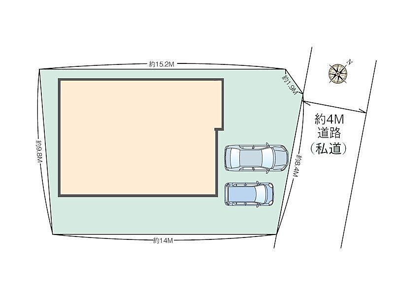 | 駐車場 | 2台 | 道路の幅員 | :北東4m |