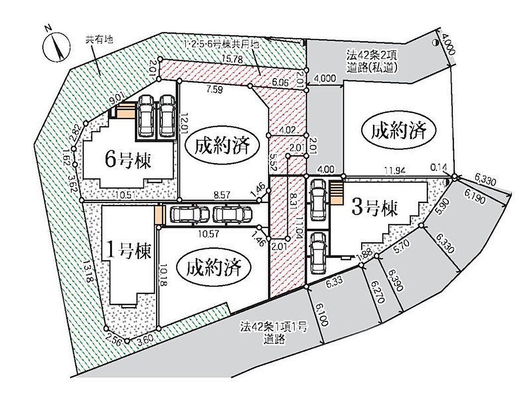 | 駐車場 | 2台 | 道路の幅員 | 3号棟:南5.8m 北4m |