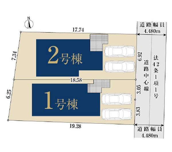 | 駐車場 | 2台 | 道路の幅員 | 2号棟:東4.4m /1号棟:東4.4m |