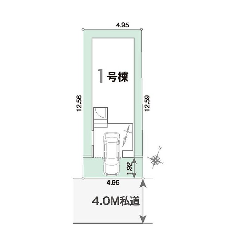 | 駐車場 | 1台 | 道路の幅員 | 1号棟:南東4m |