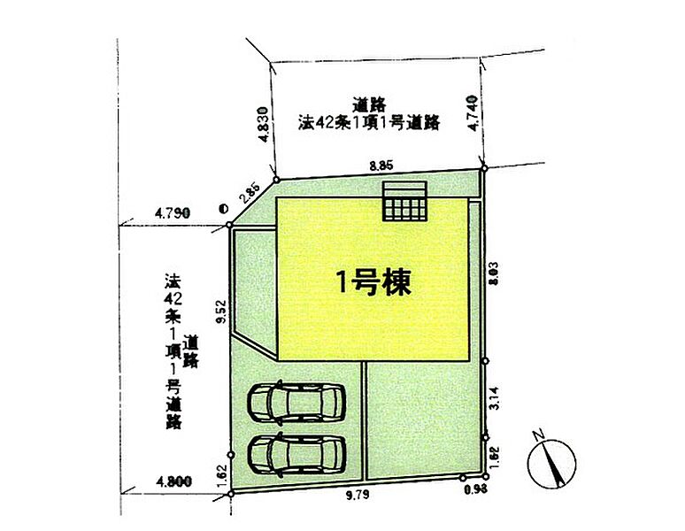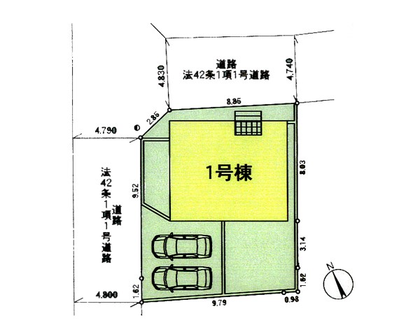| 駐車場 | 2台 | 道路の幅員 | :北東4.7m 北西4.7m |