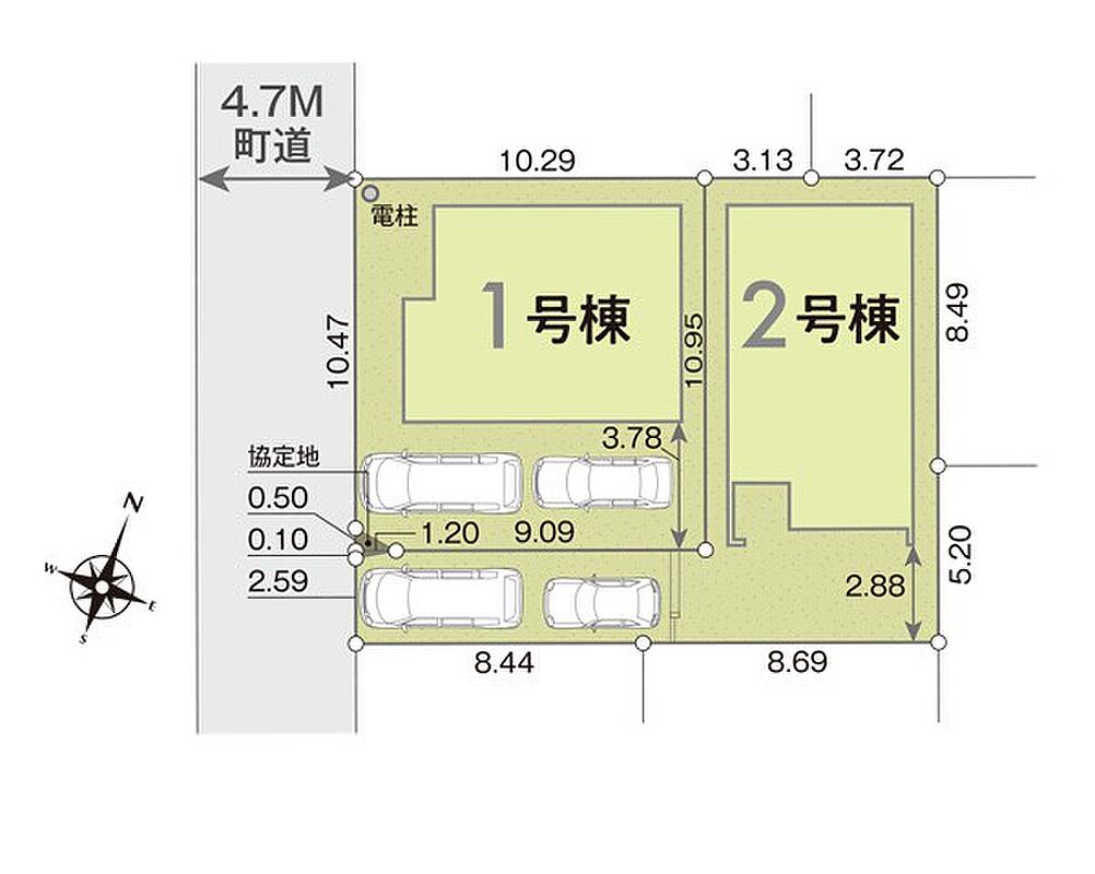 | 駐車場 | 2台 | 道路の幅員 | 1号棟:西4.7m /2号棟:西4.7m |