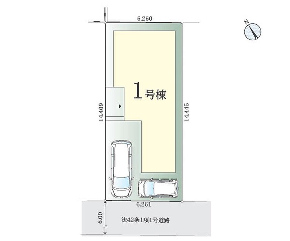 | 駐車場 | 2台 | 道路の幅員 | 1号棟:南西6m |