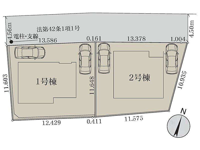 | 駐車場 | 2台 | 道路の幅員 | 2号棟:北4.5m /1号棟:北4.5m |