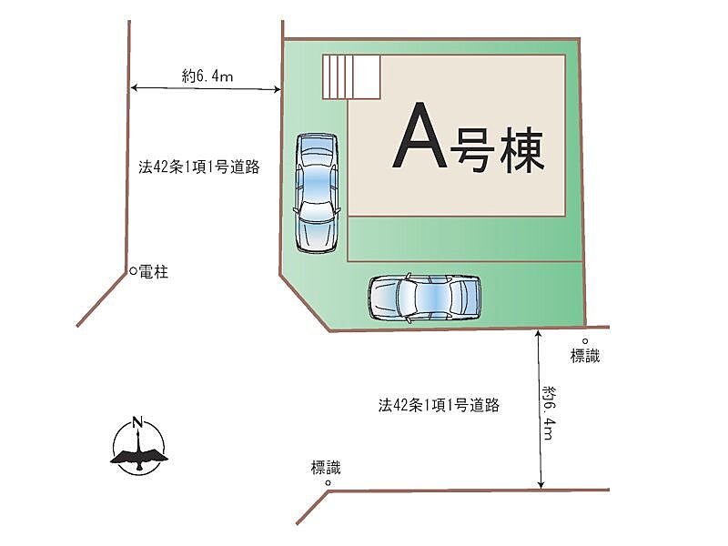 | 駐車場 | 2台 | 道路の幅員 | A号棟:西6.4m 南6.4m |