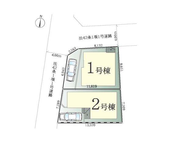| 駐車場 | 1台 | 道路の幅員 | 2号棟:西4m |
