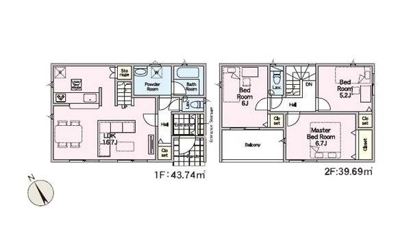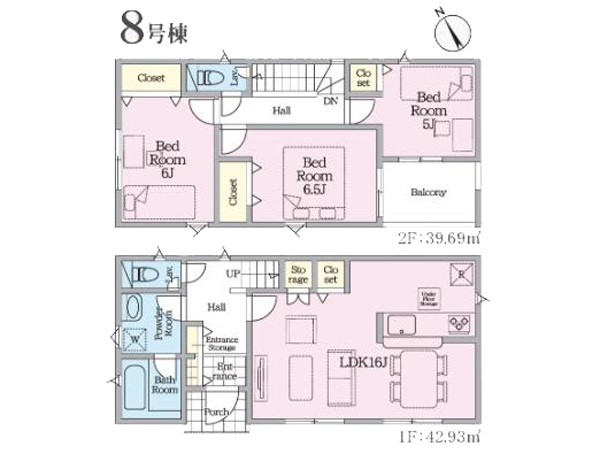 2号棟 間取り 3LDK 価格 1880万円 建物面積 83.43m2 土地面積 170.27m2 -