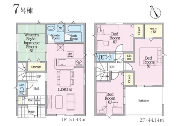 7号棟 間取り 4LDK 価格 2380万円 建物面積 95.57m2 土地面積 153.88m2 -