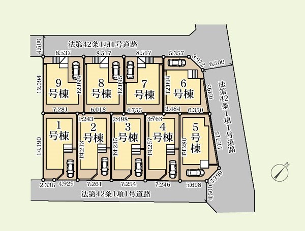 | 駐車場 | 1台 | 道路の幅員 | 5号棟:南東4.5m 北東6.5m /2号棟:南東4.5m /3号棟:南東4.5m /4号棟:南東4.5m /6号棟:北東6.5m 北西4.5m /1号棟:南東4.5m …他 |