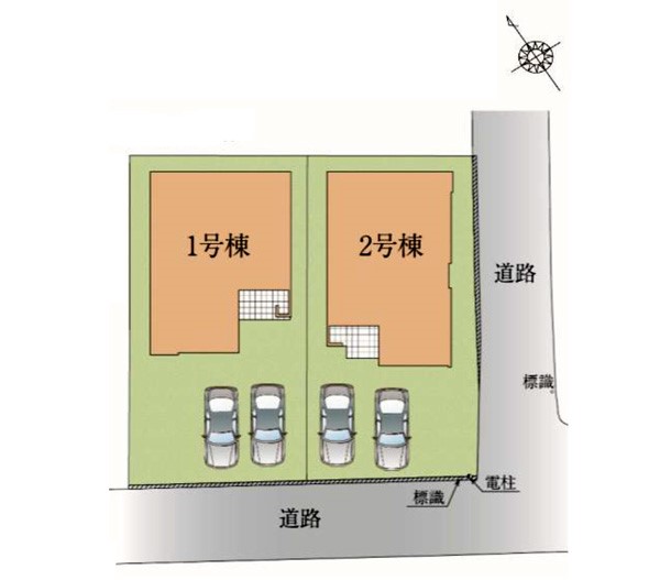 | 駐車場 | 2台 | 道路の幅員 | 1号棟:南西4m |