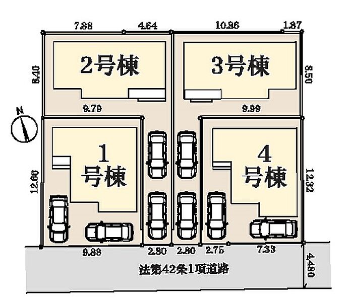 | 駐車場 | 2台 | 道路の幅員 | 4号棟:南西4.4m /1号棟:南西4.4m /3号棟:南西4.4m /2号棟:南西4.4m |