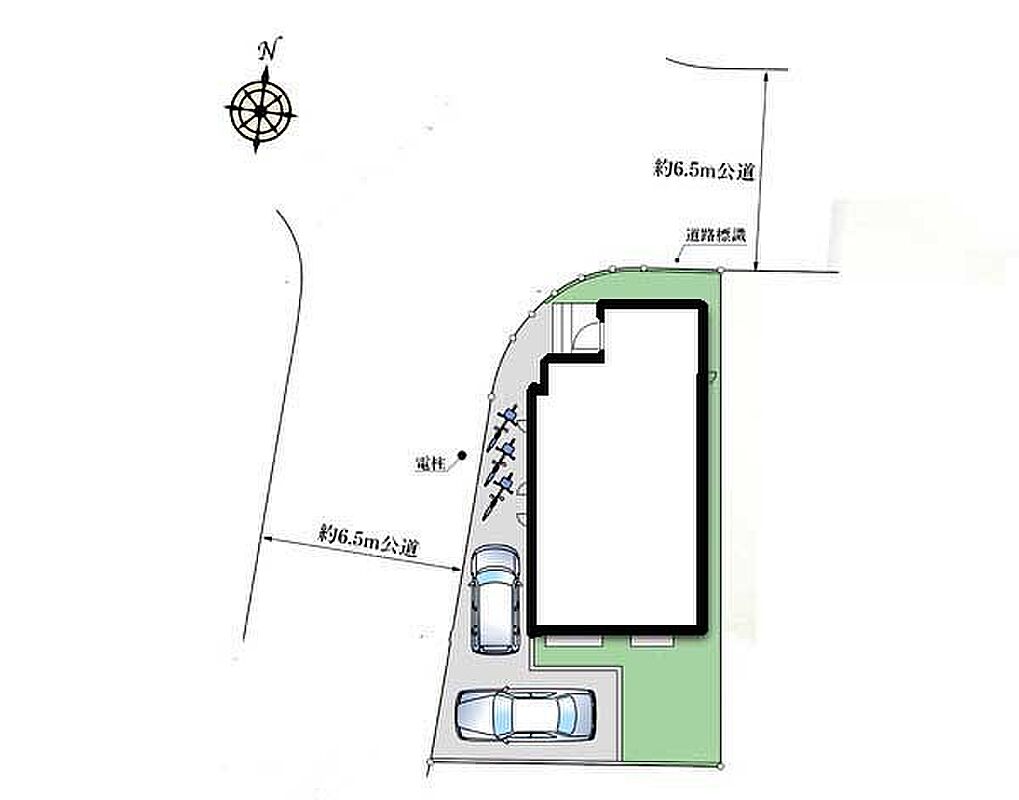 | 駐車場 | 2台 | 道路の幅員 | :西6.5m 北6.5m |