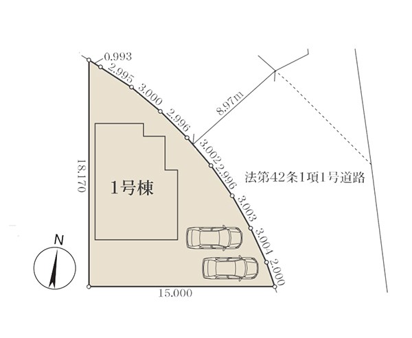| 駐車場 | 2台 | 道路の幅員 | 1号棟:北東8.9m |