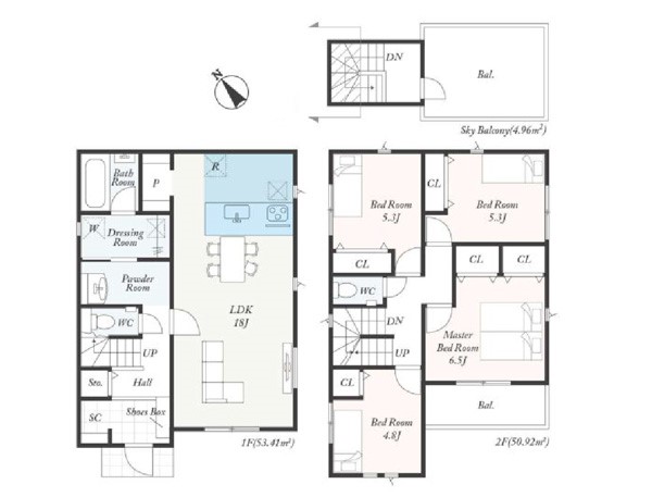 2号棟 間取り 4LDK 価格 3680万円 建物面積 107.22m2 土地面積 120.1m2 -