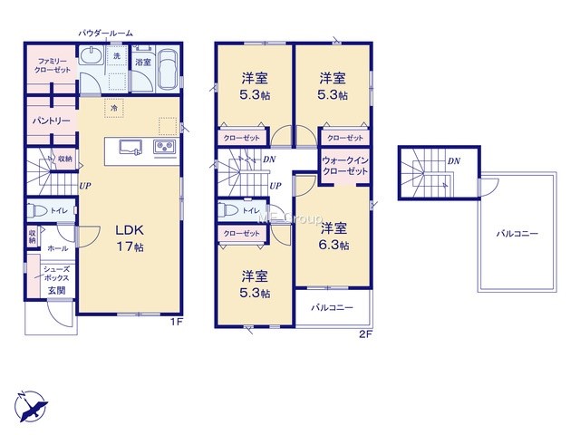 - ※完成予想図やCG合成画像は、門塀・植栽・庭・外観等、実際とは多少異なる場合があります。