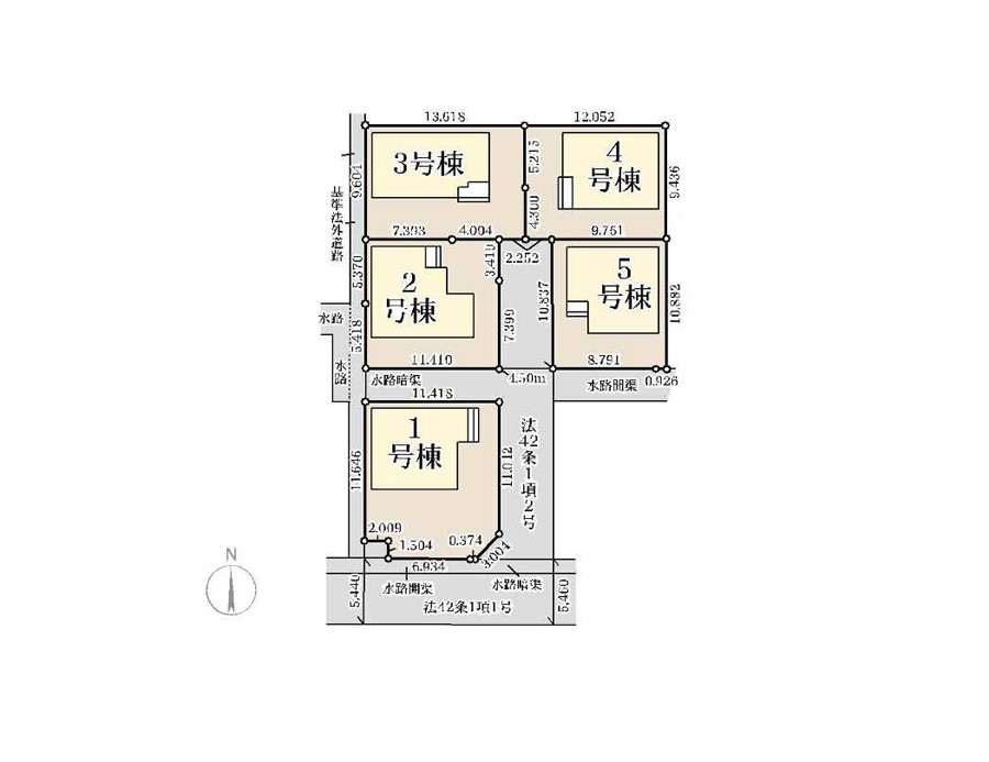 | 駐車場 | 1台 | 道路の幅員 | 5号棟:西4.5m |