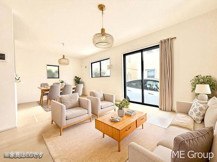 - ※完成予想図やCG合成画像は、門塀・植栽・庭・外観等、実際とは多少異なる場合があります。