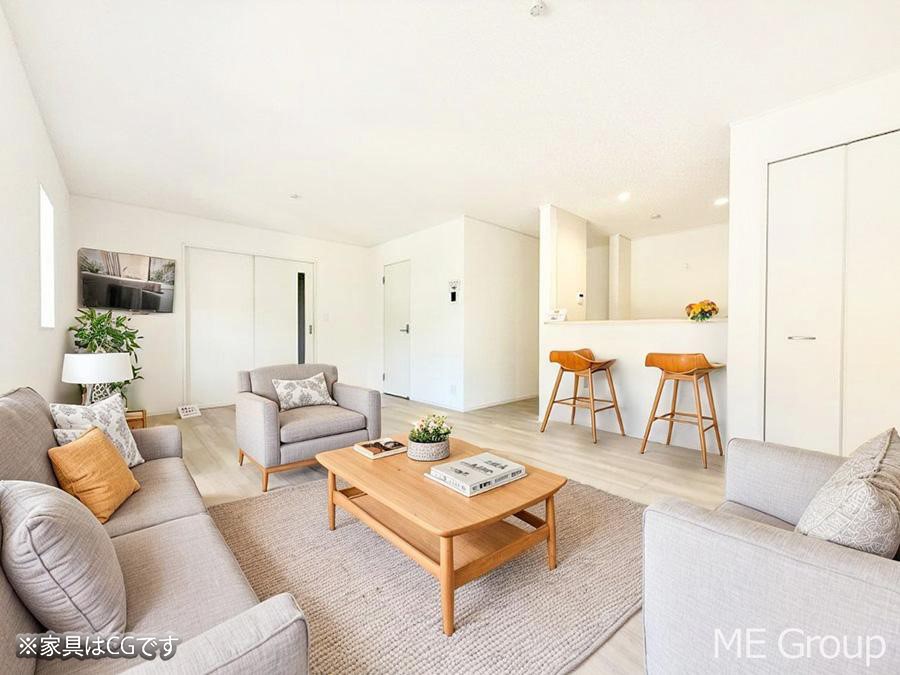 - ※完成予想図やCG合成画像は、門塀・植栽・庭・外観等、実際とは多少異なる場合があります。