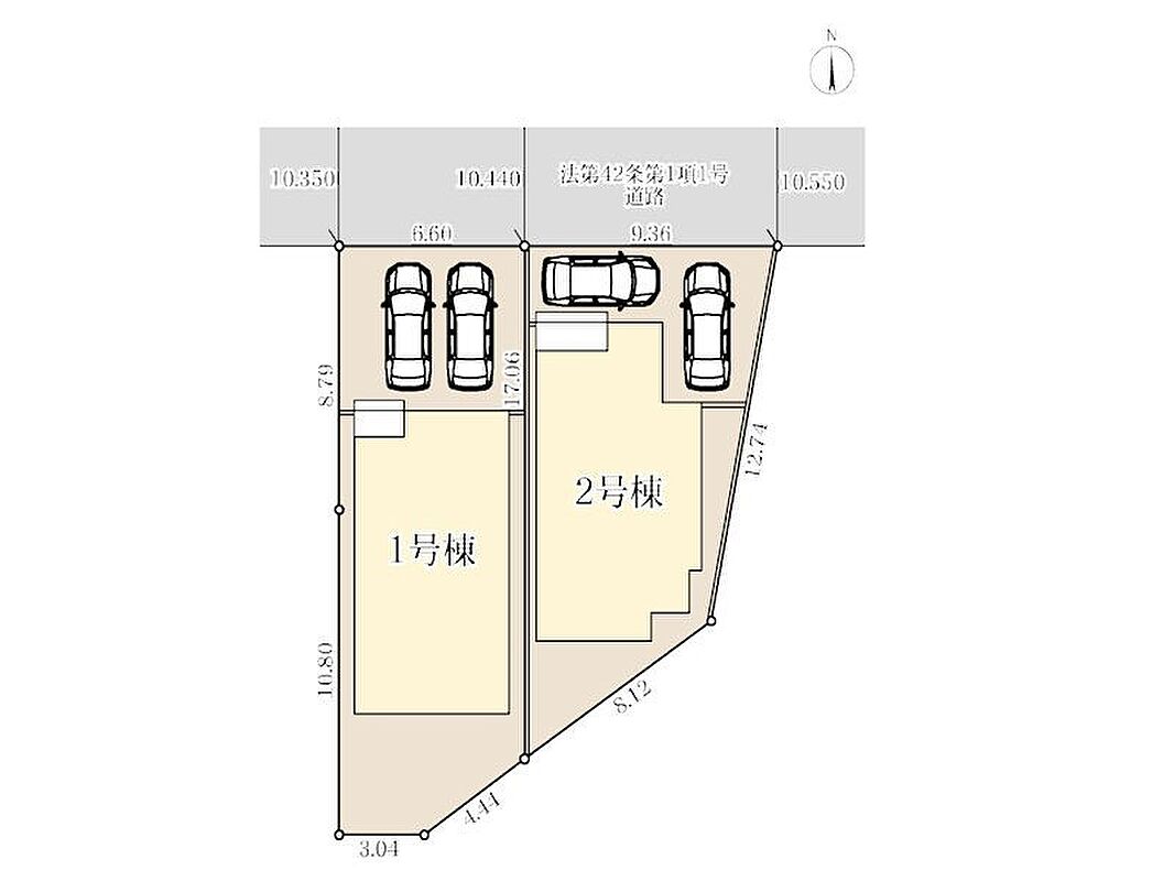 | 駐車場 | 2台 | 道路の幅員 | 2号棟:北10.4m /1号棟:北10.4m |