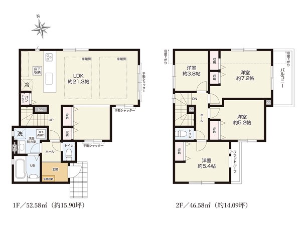 - ※完成予想図やCG合成画像は、門塀・植栽・庭・外観等、実際とは多少異なる場合があります。