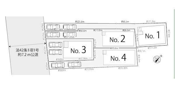 | 駐車場 | 2台 | 道路の幅員 | 4号棟:南西7.2m |