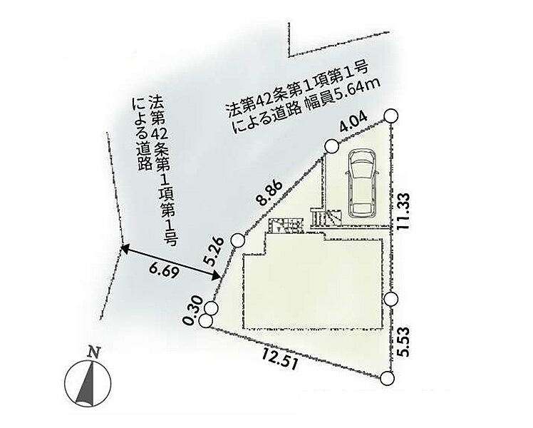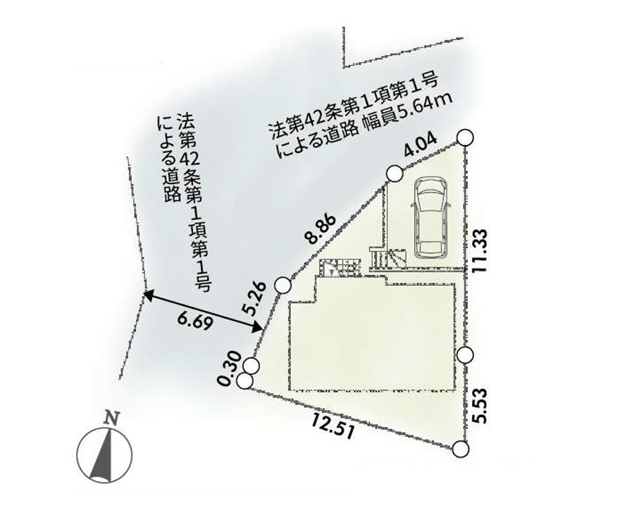 | 駐車場 | 1台 | 道路の幅員 | :北西5.6m 西6.9m |